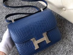 杭州爱马仕 Hermes Constance 24cm 7R azur 雾霾蓝 Matte alligator crocodile