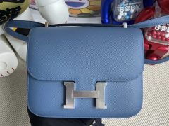 爱马仕康斯坦斯包价格 Britain Hermes Constance 19cm Epsom 7R azur 雾霾蓝 银扣