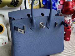Hermes Birkin 25cm Handbag 7R azur 雾霾蓝 银扣 原厂 Epsom 牛皮