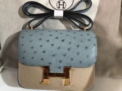 爱马仕康斯坦空姐包 Hermes Constance 24 Epsom CK8U Bleu Glacier 冰川蓝