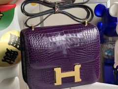 Hermes Constance 19cm 9W Crocus 梦幻紫 亮面美洲鳄鱼金扣