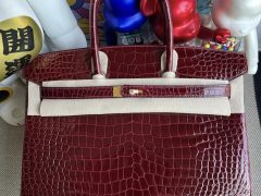 Thailand Hermes Birkin 35 Shiny Porosus Crocodile F5 Bourgogne 勃艮第酒红