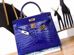 爱马仕Hermes kelly 28 7T Blue Electric 电光蓝 亮面两点尼罗鳄鱼皮革金扣