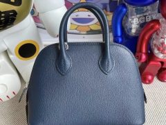 New York USA Hermes Bolide 1923 mini Chevre 山羊皮 S4 Deep Blue 深邃蓝 银扣