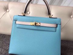 上海爱马仕凯莉包 Hermes HSS Kelly 25cm P3 Blue de nord CK10 Craie 奶昔白