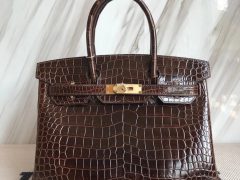 Hermes Birkin 30cm 湾鳄 Shiny Pochette Crocodile CK47 chocolate 巧克力色