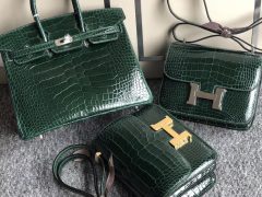 Hermes Birkin 25cm Constance 19cm CK67 Vert Fonce 祖母绿美洲鳄