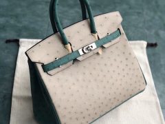 Hermes Birkin 25cm Ostrich U4 Vert Verigo CK81 Gris Tourterelle 磨砂银扣