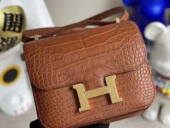 Hermes Constance 18cm Shiny alligator crocodile L3 Rose Purple 玫瑰紫 金扣