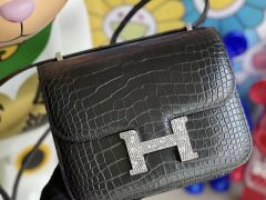 Dubai Hermes Constance 19cm 89 Noir Matte Alligator Crocodile 配蜥蜴扣