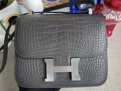 Qatar Doha Hermes Constance 24 CK88 Graphite Matte Alligator Crocodile