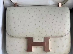 Hermes Constance 24cm Ostrich 原厂南非鸵鸟皮 3C Parchemin 羊毛白 玫瑰金扣