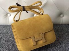 西班牙 España Hermes Constance 19cm 9D琥珀黄 Amber Boblis Suede