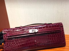 爱马仕Hermes Kelly cut 31cm 亮面两点尼罗鳄鱼皮 F5勃艮第酒红Bourgogne金扣