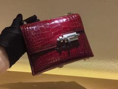 Hermes Kelly cut 31亮面倒V澳洲湾鳄鱼皮革 F5勃艮第酒红
