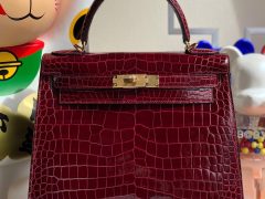 爱马仕凯莉包25寸多少钱 Hermes Kelly 28cm湾鳄F5 Bourgogne 勃艮第酒红
