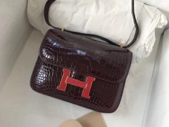 Hermes Constance 19cm 亮面方块 美洲鳄鱼 CK57波尔多酒红Bordeaux 蜥蜴扣 金扣