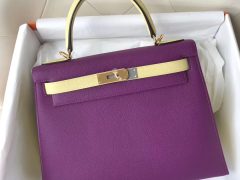 Hermes Handbag Australia Kelly Bag 28 Epsom P9海葵紫拼色1Z小鸡黄