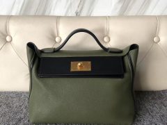 爱马仕2424价格 Hermes Kelly 24/24 29cm V6丛林绿 Cacncpee 拼CK89黑色