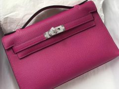 爱马仕凯莉包Hermes Mini Kelly 22 pochette Epsom L3玫瑰紫2018年最新颜色 银扣