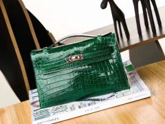 Hermes MiniKelly pochette 爱马仕凯莉手拿包亮面方块鳄鱼 5L极度紫金扣