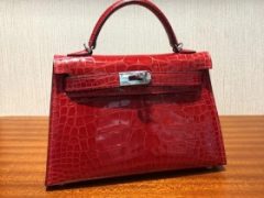 Hermes mini Kelly 二代 20cm 亮面方块鳄鱼手工蜜蜡线CK95法拉利红