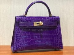 Hermes mini Kelly 二代 20 亮面方块鳄鱼手工蜜蜡线 5L极度紫