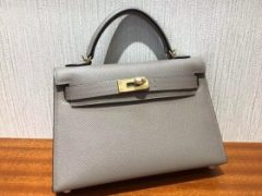 爱马仕凯莉包Hermes mini Kelly 二代 20 Epsom牛皮 M8沥青灰 金扣