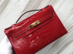Hermes MiniKelly Pochette 壹代 CK95法拉利紅 亮面方塊 美洲鱷魚