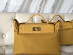 爱马仕最新款凯莉包Hermes Kelly 24/24 9D琥珀黄maurice拼盖头鳄鱼皮拼Swift牛皮