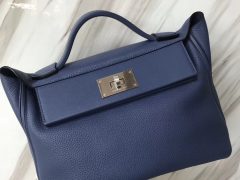 Hermes爱马仕新款Kelly 24/24 29cm Maurice/Swift 7E明蓝色blue Brighton