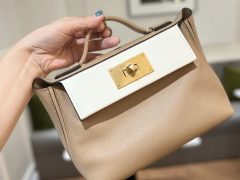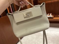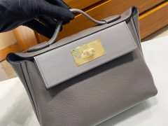 Qatar Doha Hermès Mini 24/24 Bag Etain Evercolor and Swift Golden Hardware