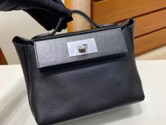Malaysia Hermes kelly 24/24 Mini Evercolor 拼 Swift CK89 Noir 黑色 银扣