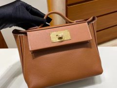 爱马仕kelly2424价格 Hermes kelly 24/24 Mini Evercolor 拼 Swift 37 Gold 金棕色