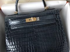 Hermes 凯莉包Kelly 28 Bag 亮面两点 尼罗鳄鱼 1P鸭子蓝 金扣