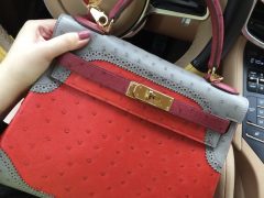 爱马仕凯莉包蕾丝款价格 Hermes Kelly 28cm Ostrich Ghillie鸵鸟皮