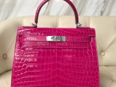 爱马仕包包价格 Hermes Kelly 28cm J5天方夜谭粉紫 两点尼罗鳄鱼皮 银扣