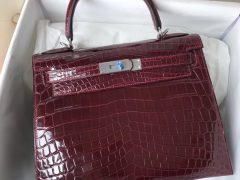 Australia Hermes Kelly Bag 28cm F5勃艮第酒红 亮面两点 尼罗鳄鱼