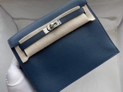 英国爱马仕官网 Hermes Kelly danse 22cm Evercolor S4 Deep Blue 深邃蓝 金扣
