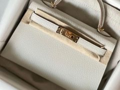Hermès Kelly Mini II Epsom 10 Craie /X9 Mauve Sylvestre Golden Hardware