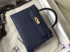 Hermes MiniKelly 2代 Epsom CK73宝石蓝 御用手掌纹 金扣