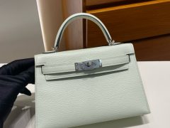 爱马仕迷你凯莉包2代 Hermes mini Kelly二代20 丝绒绿U4 Vert Verigo鸵鸟皮