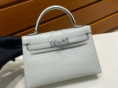 Hermes Kelly Sellier mini Matte Alligator Crocodile Gris Neve Palladium Hardware