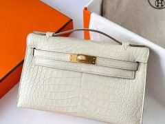 Qatar Doha Hermès Kelly Pochette Matte Alligator Crocodile 8L Beton Golden Hardware
