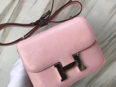 爱马仕Hermes Constance 19cm 5P Pink 樱花粉 Lizard蜥蜴皮 银扣