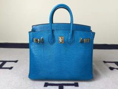 爱马仕蜥蜴皮 birkin Hermes Birkin 25cm 7w伊兹密尔蓝 蜥蜴皮 金扣