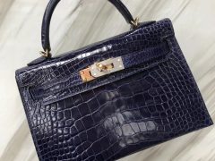 Hermes Mini Kelly II Price M3墨水蓝 Blue Encre 亮面方块 美洲鳄
