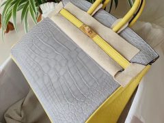 Hermes Birkin 25cm Crocodile CC80 Griss Pearl M9 Mimosa 金盏花黄