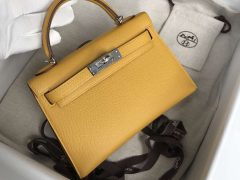 爱马仕凯莉包二代迷你 Hermes MiniKelly 2代 9D琥珀黄 Epsom 银扣