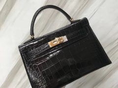 HERMES Malaysia MiniKelly2代 CK89 Shiny alligator crocodile亮面方块美洲鳄鱼